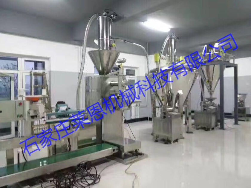 粉粒物料由投料槽通過1號(hào)真空輸送機(jī)進(jìn)入混料罐一,經(jīng)過混合完成后再經(jīng)2號(hào)真空輸送機(jī)進(jìn)入混料罐二,進(jìn)行二次混合完成后,在經(jīng)過3號(hào)真空輸送機(jī)將物料輸送至包裝及內(nèi),物料通過包裝機(jī)進(jìn)行包裝完成。整個(gè)物料轉(zhuǎn)運(yùn)過程,物料都在密閉管道內(nèi)輸送,杜絕了粉塵對(duì)工作環(huán)境污染,減少車間粉塵揚(yáng)塵,避免操作人員受粉塵的傷害,適用于制藥、食品、化工、電池等行業(yè)。